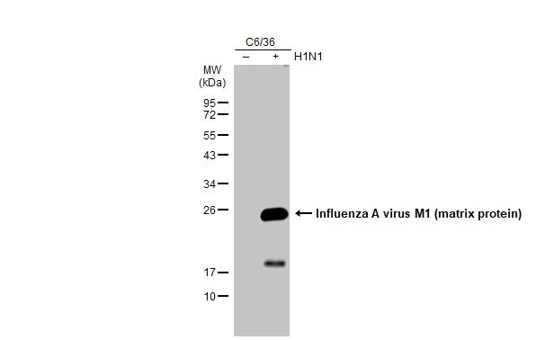 | Immunogen: | Recombinant protein encompassing a sequence within the Internal region of Influenza A virus M1 (matrix protein) (A/Puerto Rico/8/1934(H1N1). The exact sequence is proprietary. |