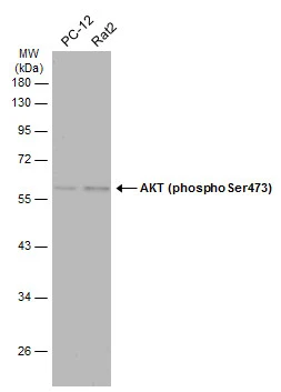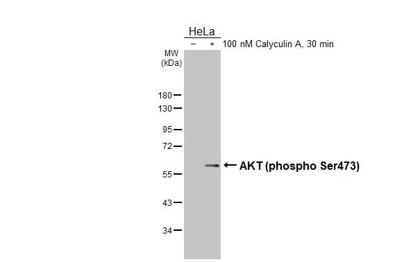 | Immunogen: | Carrier-protein conjugated synthetic peptide surrounding phospho Ser473 of human AKT. The exact sequence is proprietary. |