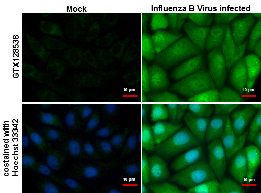 | Immunogen: | Recombinant fragment corresponding to N-terminal region of Influenza B virus NP (B/Taiwan/753/2005). The exact sequence is proprietary. |
