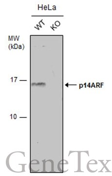 | Immunogen: | Carrier-protein conjugated synthetic peptide encompassing a sequence within the C-terminus region of human CDKN2A / p14ARF. The exact sequence is proprietary. |