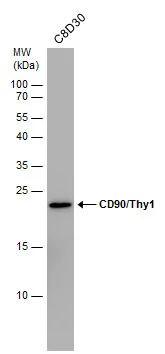 | Immunogen: | Recombinant protein encompassing a sequence within the center region of human CD90. The exact sequence is proprietary. |