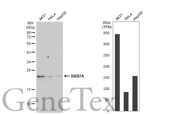 | Immunogen: | Recombinant protein encompassing a sequence within the center region of human RAB7A. The exact sequence is proprietary. |