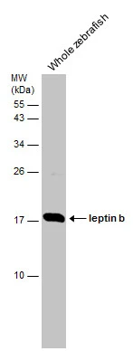 | Immunogen: | Recombinant protein encompassing a sequence within the center region of zebrafish leptin b. The exact sequence is proprietary. |