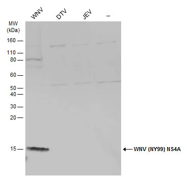 | Immunogen: | Full length West Nile virus NS4A recombinant protein. (West Nile virus (strain NY99-IC)) |