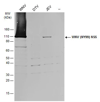 | Immunogen: | Recombinant protein encompassing a sequence within the C-terminus region of West Nile virus NS5 protein (West Nile virus (strain NY99-IC)). The exact sequence is proprietary. |