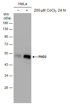 | Immunogen: | Carrier-protein conjugated synthetic peptide encompassing a sequence within the C-terminus region of human PHD2. The exact sequence is proprietary. |