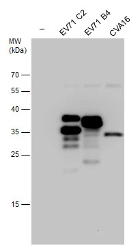 | Immunogen: | Carrier-protein conjugated synthetic peptide encompassing a sequence within the center region of Enterovirus 71 VP1 (EV71 virus (strain USA/BrCr/1970)). The exact sequence is proprietary. |