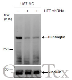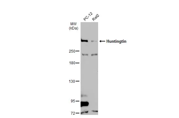 | Immunogen: | Carrier-protein conjugated synthetic peptide encompassing a sequence within the N-terminus region of human Huntingtin. The exact sequence is proprietary. |