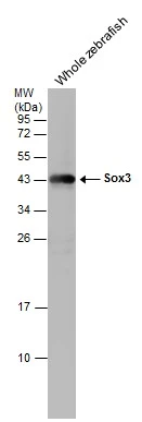 | Immunogen: | Recombinant protein encompassing a sequence within the center region of zebrafish Sox3. The exact sequence is proprietary. |