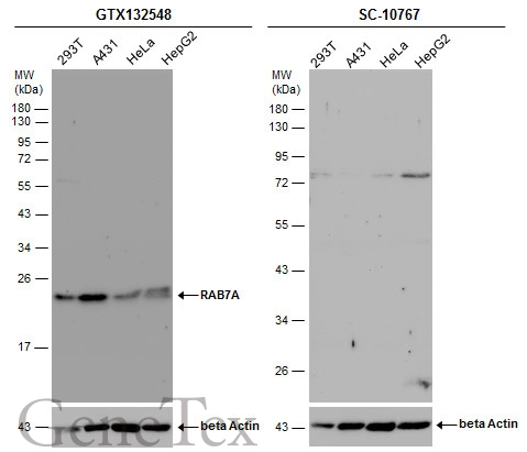 | Immunogen: | Carrier-protein conjugated synthetic peptide encompassing a sequence within the center region of human RAB7A. The exact sequence is proprietary. |
