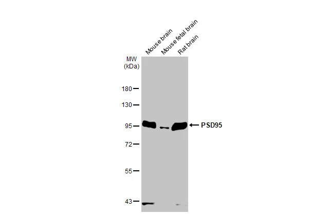 | Immunogen: | Carrier-protein conjugated synthetic peptide encompassing a sequence within the N-terminus region of mouse PSD95. The exact sequence is proprietary. |
