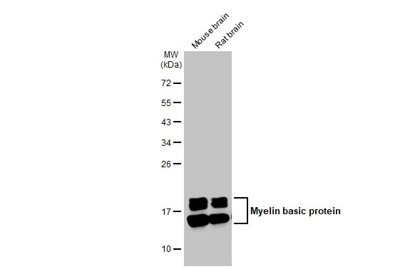 | Immunogen: | Carrier-protein conjugated synthetic peptide encompassing a sequence within the C-terminus region of mouse Myelin Basic Protein. The exact sequence is proprietary. |