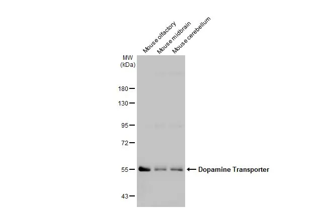 | Immunogen: | Recombinant protein encompassing a sequence within the C-terminus region of mouse Dopamine Transporter. The exact sequence is proprietary. |