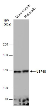 | Immunogen: | Recombinant protein encompassing a sequence within the C-terminus region of mouse USP48. The exact sequence is proprietary. |