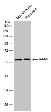 | Immunogen: | Carrier-protein conjugated synthetic peptide encompassing a sequence within the C-terminus region of human n-Myc. The exact sequence is proprietary. |