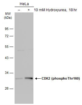 | Immunogen: | Carrier-protein conjugated synthetic peptide surrounding phospho Thr160 of human CDK2. The exact sequence is proprietary. |