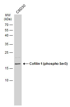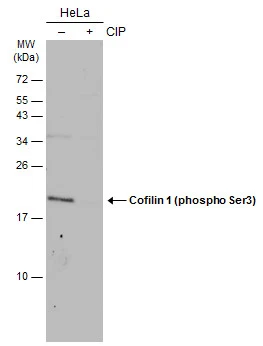 | Immunogen: | Carrier-protein conjugated synthetic peptide surrounding phospho Ser3 of human Cofilin 1. The exact sequence is proprietary. |