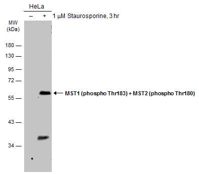 | Immunogen: | Carrier-protein conjugated synthetic peptide surrounding phospho Thr183 of human MST1. The exact sequence is proprietary. |