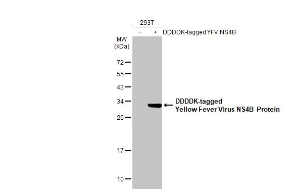 | Immunogen: | Recombinant protein encompassing a sequence within the center region of Yellow Fever Virus NS4B Protein (Yellow fever virus (strain 17D vaccine)). The exact sequence is proprietary. |