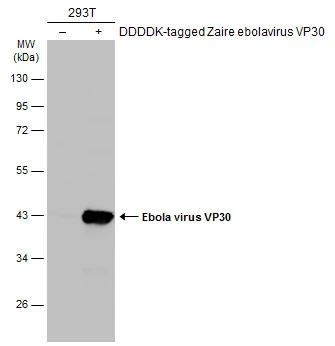 | Immunogen: | Recombinant protein encompassing a sequence within the center region of Ebola virus VP30 (Zaire ebolavirus (strain Mayinga-76)). The exact sequence is proprietary. |