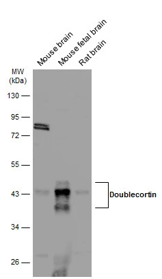 | Immunogen: | Carrier-protein conjugated synthetic peptide encompassing a sequence within the C-terminus region of mouse Doublecortin. The exact sequence is proprietary. |