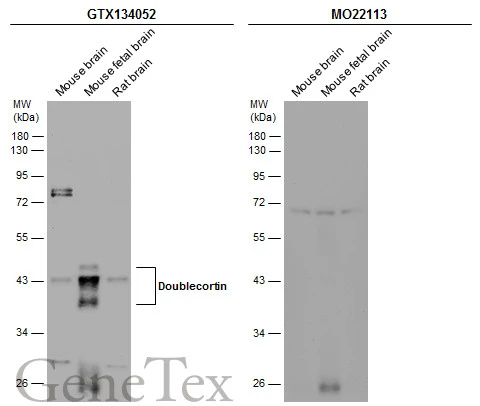 Description: This gene encodes a member of the doublecortin family. The protein encoded by this gene is a cytoplasmic protein and contains two doublecortin domains, which bind microtubules. In the developing cortex, cortical neurons must migrate over long distances to reach the site of their final differentiation. The encoded protein appears to direct neuronal migration by regulating the organization and stability of microtubules. In addition, the encoded protein interacts with LIS1, the regulatory gamma subunit of platelet activating factor acetylhydrolase. Studies in knockout mice lacking this gene and the LIS1 gene suggest that the molecular interaction of these two genes is important in both in neuronal migration and neurogenesis, and there is a cortical role of this gene in nuclear translocation and positioning of the mitotic spindle in radial glial mitotic division. Multiple transcript variants encoding three different isoforms have been found for this gene. [provided by RefSeq]