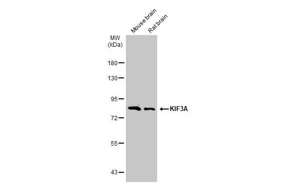 | Immunogen: | Carrier-protein conjugated synthetic peptide encompassing a sequence within the C-terminus region of mouse KIF3A. The exact sequence is proprietary. |