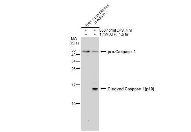 | Immunogen: | Carrier-protein conjugated synthetic peptide encompassing a sequence within the C-terminus region of human Caspase 1 p10 subunit. The exact sequence is proprietary. |
