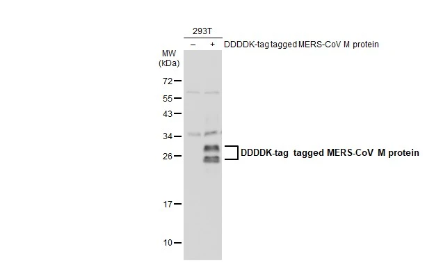 | Immunogen: | Carrier-protein conjugated synthetic peptide encompassing a sequence within the center region of MERS-CoV M protein (MERS-CoV (strain United Kingdom/H123990006/2012)). The exact sequence is proprietary. |