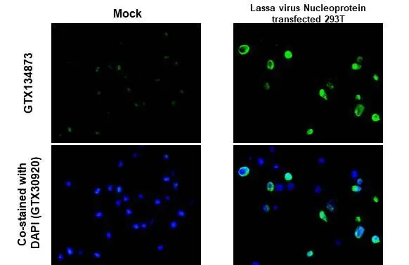 | Immunogen: | Carrier-protein conjugated synthetic peptide encompassing a sequence within the N-terminus region of Lassa virus Nucleoprotein (Lassa virus (strain mouse/Sierra Leone/Josiah/1976)). The exact sequence is proprietary. |
