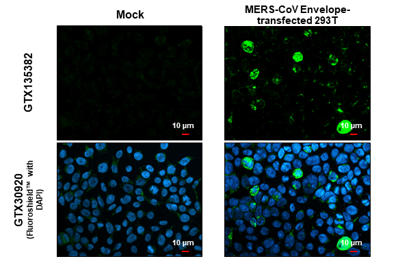 | Immunogen: | Carrier-protein conjugated synthetic peptide encompassing a sequence within the C-terminus region of MERS-CoV Envelope protein. The exact sequence is proprietary. |