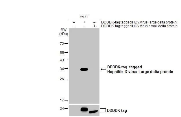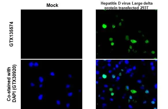 | Immunogen: | Carrier-protein conjugated synthetic peptide encompassing a sequence within the C-terminus region of Hepatitis D virus Large delta protein (HDV genotype I (strain D380)). The exact sequence is proprietary. |