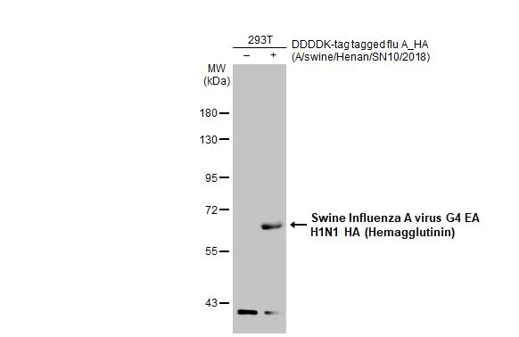 | Immunogen: | Recombinant protein encompassing a sequence within the N-terminus region of Swine Influenza A virus G4 EA H1N1 HA (Hemagglutinin) ((A/swine/Henan/SN10/2018). The exact sequence is proprietary. |