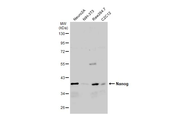 | Immunogen: | Recombinant protein encompassing a sequence within the center region of human NANOG. The exact sequence is proprietary. |