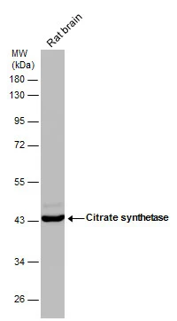 | Immunogen: | Recombinant protein encompassing a sequence within the center region of human Citrate synthetase. The exact sequence is proprietary. |