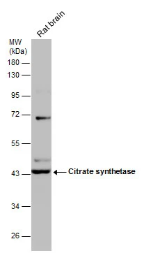 | Immunogen: | Recombinant protein encompassing a sequence within the center region of human Citrate synthetase. The exact sequence is proprietary. |