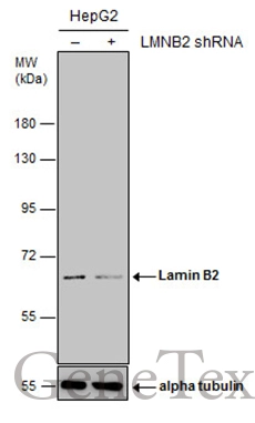 | Immunogen: | Recombinant protein encompassing a sequence within the center region of human Lamin B2. The exact sequence is proprietary. |