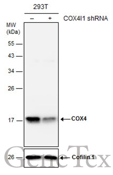 | Immunogen: | Recombinant protein encompassing a sequence within the center region of human COX4. The exact sequence is proprietary. |