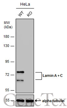 | Immunogen: | Recombinant protein encompassing a sequence within the center region of human Lamin A + C. The exact sequence is proprietary. |