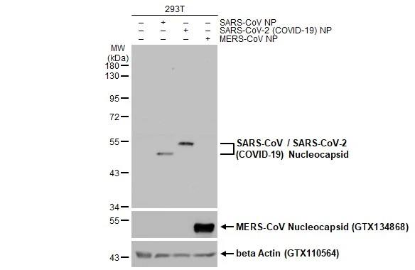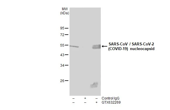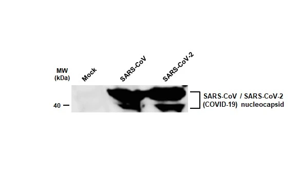 | Immunogen: | The immunogen used to generate this antibody corresponds to SARS-CoV Nucleocapsid (121-422 a.a.). |