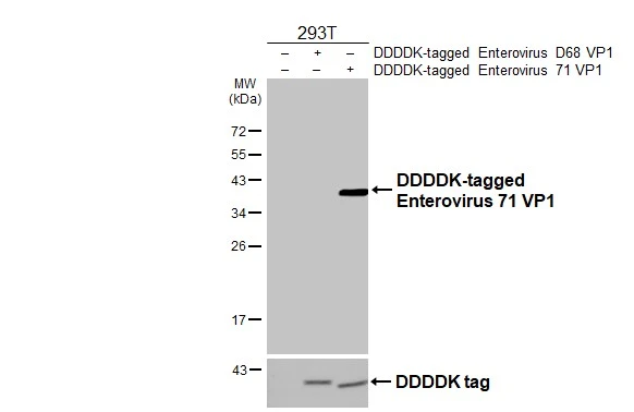 | Immunogen: | Carrier-protein conjugated synthetic peptide encompassing a sequence within the center region of Enterovirus 71 VP1 (EV71 virus (strain USA/BrCr/1970)). The exact sequence is proprietary. |