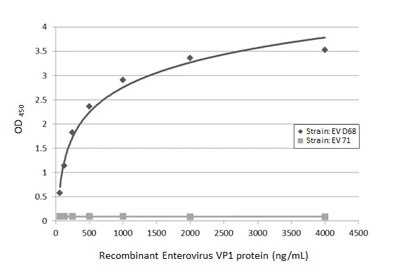 | Immunogen: | Recombinant protein encompassing a sequence within the C-terminus region of Enterovirus D68 VP1 protein. The exact sequence is proprietary. |
