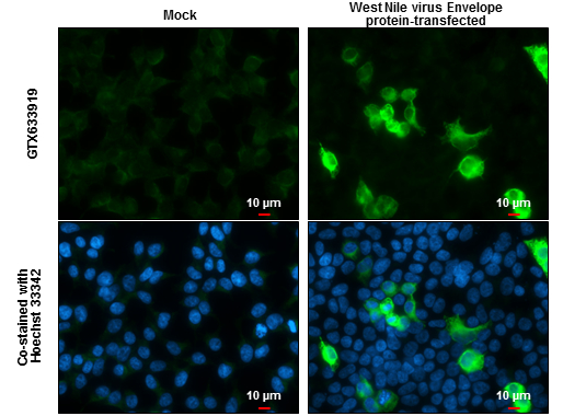 | Immunogen: | Recombinant protein encompassing a sequence within the center region of West Nile virus Envelope protein (West Nile virus (strain NY99-IC)). The exact sequence is proprietary. |