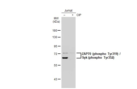 | Immunogen: | Carrier-protein conjugated synthetic peptide surrounding phospho Tyr319 of human ZAP70. The exact sequence is proprietary. |