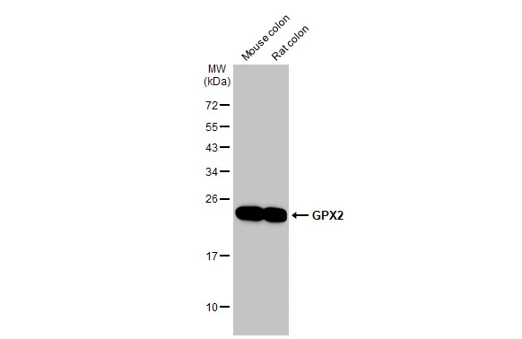 | Immunogen: | Carrier-protein conjugated synthetic peptide encompassing a sequence within the C-terminus region of human GPX2. The exact sequence is proprietary. |