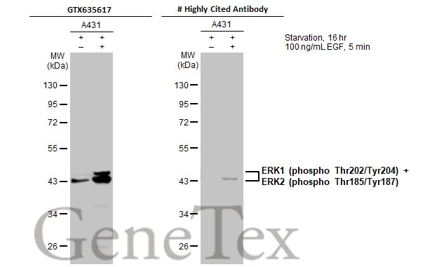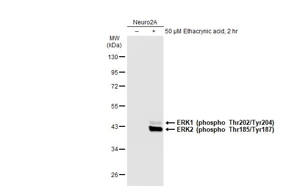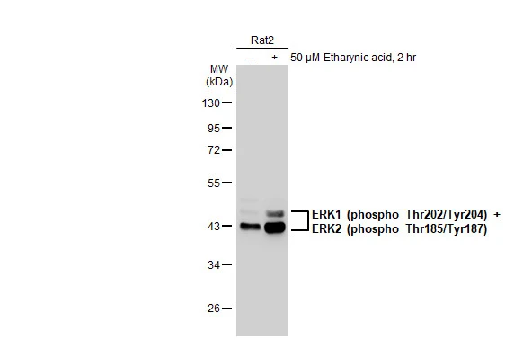 | Immunogen: | Carrier-protein conjugated synthetic peptide surrounding phospho Thr202/Tyr204 of human ERK1. The exact sequence is proprietary. |