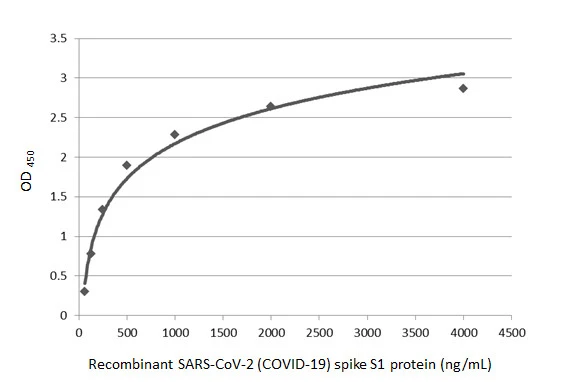 Sandwich ELISA detection of recombinant full-length SARS-CoV-2 spike (trimer) protein using antibodies as below. Capture: SARS-CoV-2 (COVID-19) Spike RBD antibody [HL1004] (GTX635793) (5 µg/mL) Detection: HRP-conjugated SARS-CoV-2 (COVID-19) Spike RBD antibody [HL1014] (GTX635807) (1 µg/mL) Please notice that GTX635807 needs to be conjugated to HRP to function as the detection antibody when paired with GTX635793. Please contact us for custom HRP-conjugated antibody.