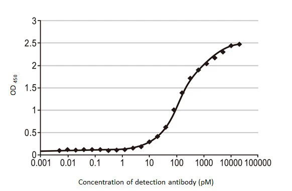 Sandwich ELISA detection of recombinant Influenza A virus Nucleoprotein protein (A/California/2009 (H1N1)), DDDDK Tag (GTX135904-pro) using antibodies as below. Capture: Influenza A virus Nucleoprotein antibody [HL1098] (GTX636282) (5 µg/mL) Detection: HRP-conjugated Influenza A virus Nucleoprotein antibody [HL1103] (GTX636318) (1 µg/mL) Please notice that GTX636318 needs to be conjugated to HRP to function as the detection antibody when paired with GTX636282. Please contact us for custom HRP-conjugated antibody.