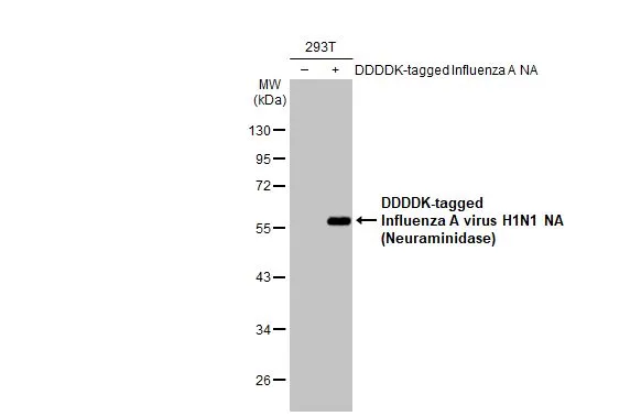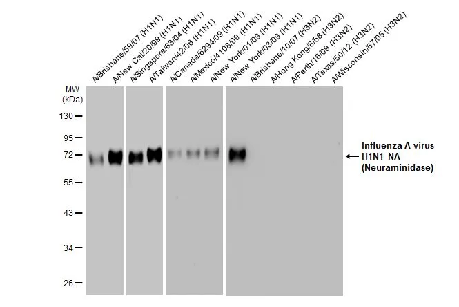 | Immunogen: | Recombinant protein encompassing a sequence within the center region of Influenza A virus H1N1 NA (Neuraminidase) (Influenza A virus (A/WSN/1933(H1N1))). The exact sequence is proprietary. |