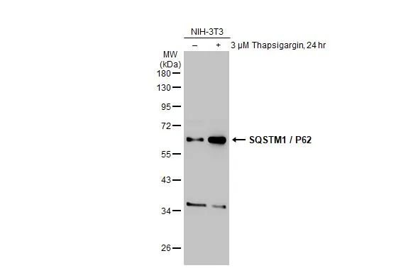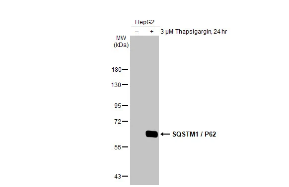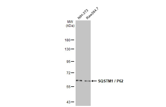 | Immunogen: | Carrier-protein conjugated synthetic peptide encompassing a sequence within the center region of human SQSTM1 / P62. The exact sequence is proprietary. |